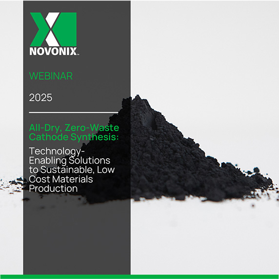 Watch the on-demand webinar with Dr. Mark McArthur, Director of Cathode Technology for NOVONIX, as he explores how our patented all-dry, zero-waste synthesis method is revolutionizing lithium-ion battery cathodes. Learn how this innovative process produces high-performance, single-crystal NMC powders without using liquids, optimizing both battery cost and sustainability.